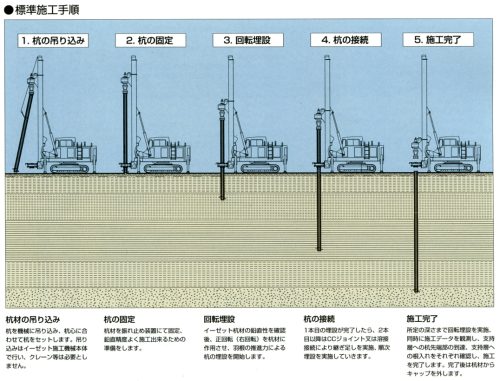 省スペース、低空頭に対応するのみならず、現場環境に優しい、低振動・低騒音、排出残土ゼロの杭施工をご提供することができます。
