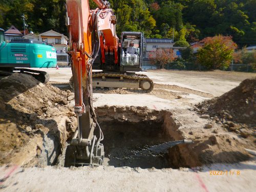 【1】原地盤を基礎の底までスキトリます。