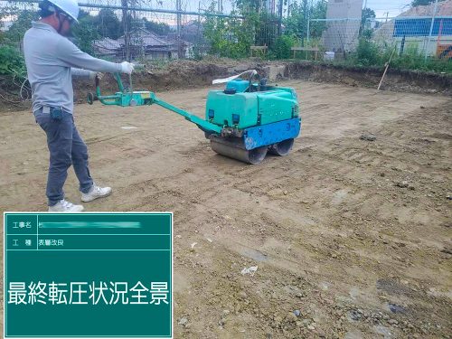 【5】レベル調整を行いながら、ローラー等により本転圧を行います。