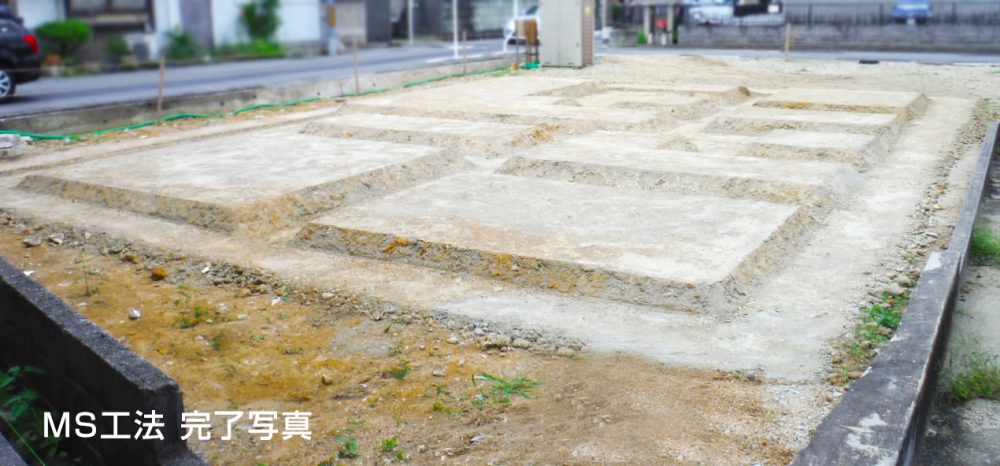 地表面から比較的浅いところに軟弱な層がある場合に、セメント系固化材と原地盤を用いて補強します。