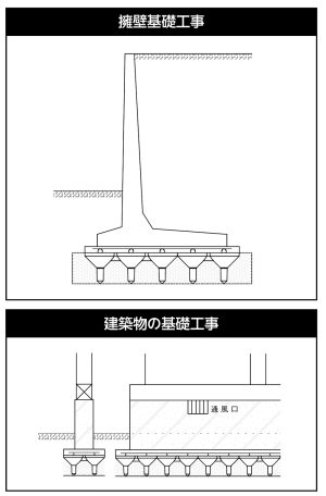 支持層に確実に到達・根入れを行うことで、杭径に比べて高い支持力性能、引抜き力性能を発揮し、経済的な杭基礎提案を行います。